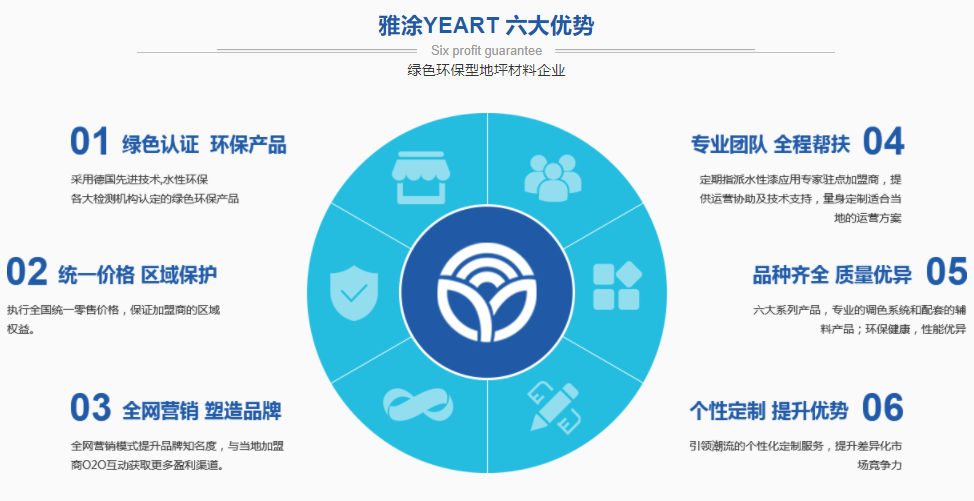 武漢雅涂科技有限公司,創建于2009年。是較早引進地坪漆生產技術,經過多年發展,已成長為集地坪材料、無機地坪材料及水性地坪漆的研發、生產、銷售于一體的全體系地坪系統服務商。YEART雅涂是武漢雅涂科技有限公司旗下的地坪材料品牌,中國知名的地坪材料供應商,為各個領域提供適用性廣、性能穩定、品質優良、具用長效使用壽命的地坪產品。武漢雅涂科技有限公司地坪產品具有環保、潔凈、耐磨、抗壓、耐沖擊及色彩豐富等優點,Yatufloor產品體系包括水性聚氨酯地坪系統、水性環氧地坪漆、藝術地坪材料、密封固化劑、透水地坪材料、彩色路面材料、水性聚氨脂砂漿,球場地坪材料等多種地坪產品體系。武漢雅涂建材有限公司為顧客提供包括技術咨詢,基礎勘測,施工指導,地坪系統解決方案。